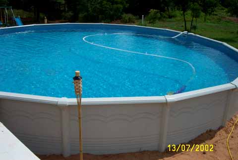 The well kept up just fine and when it was full enough, I turned on the sand filter and waited to see the clear water. Two days later and I was still waiting. I have since found out that the sand filter will only filter out dirt and stuff to about 50 microns. The silt that was in solution in the water must be a lot smaller than that, because on day 3, it was still as dirty as ever. (insert panic here) I guess I failed to mention that all of this project was to prepare for my sons 4th birthday party, in which about 35 people were coming for, and was fast approaching. I had wasted an entire week with flock and other chemicals to no avail, not to mention, wasting water while vacuuming to waste!!!